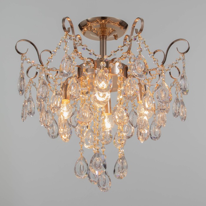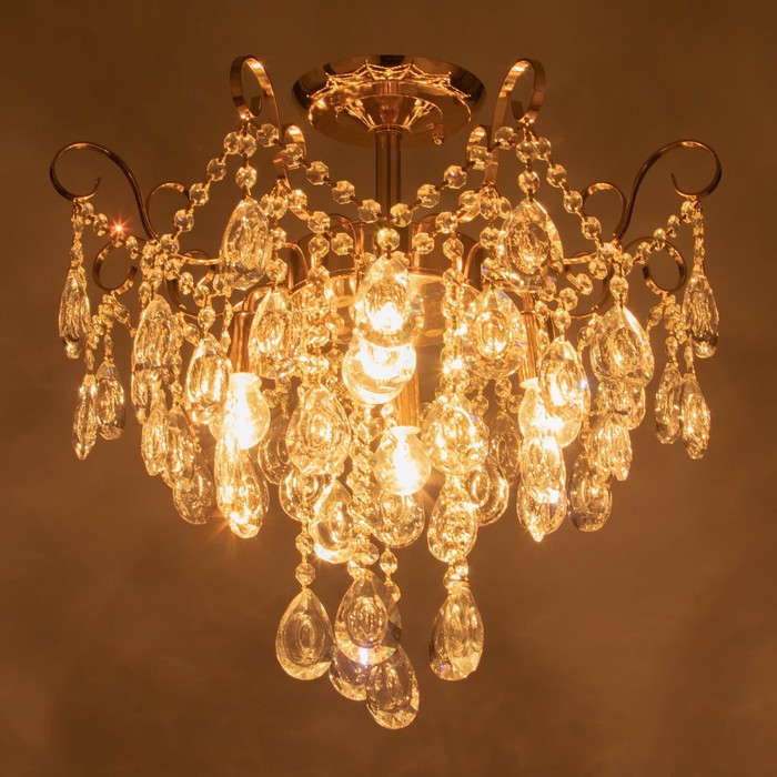 Классическая элегантность в современном исполнении! Хрустальная люстра BayerLux с четырьмя рожками — это изысканный потолочный светильник для создания торжественной атмосферы. Золотое основание и прозрачный хрусталь образуют гармоничный дуэт.