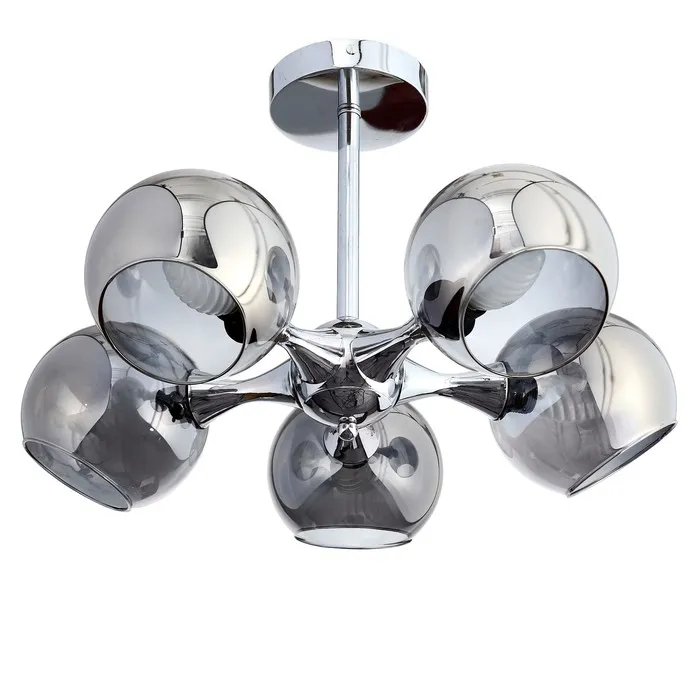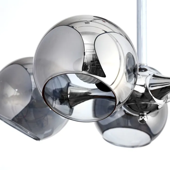 Свет, который становится центральным акцентом интерьера! Потолочная люстра с пятью стеклянными рассеивателями и хромированным каркасом — это мощное и стильное освещение для гостиной, спальни, кухни или прихожей площадью до 15 м². Хром и тёмные оттенки плафонов легко вписываются в современный и лофтовый дизайн, добавляя интерьеру глубины и технологичности.