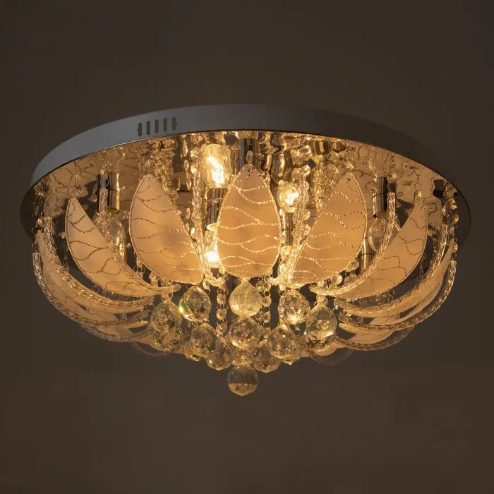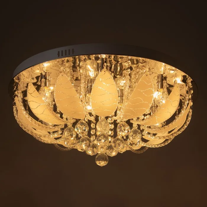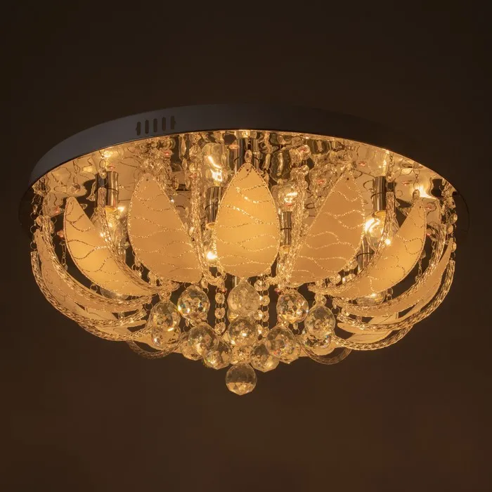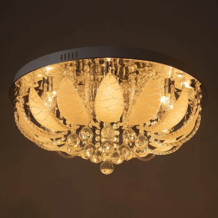 Форма служит функции: Установка на планку обеспечивает прочность и безопасность. Подходит для натяжных потолков при использовании LED-ламп. Конструкция работает как фоновое освещение и как самостоятельный декоративный объект в духе хрусталя и буше.