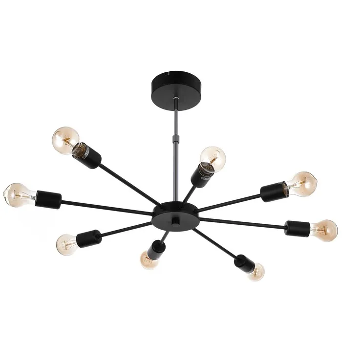 Это решение создано для тех, кто хочет видеть в своём доме не просто источник света, а полноценный объект дизайна. Чёрный цвет, 8 открытых источников света и правильное распределение потока работают на стиль, тепло и ритм пространства без лишней сложности.