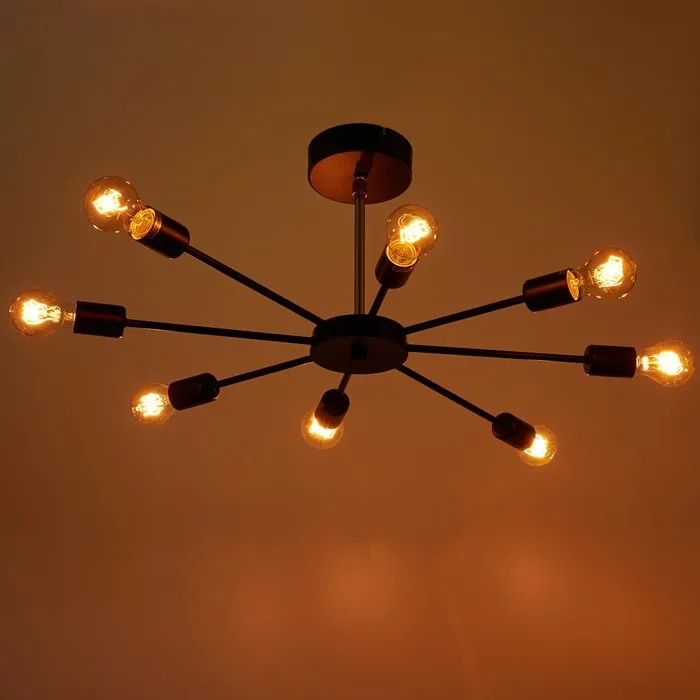 - 8 мест под лампы E27: Возможность использовать лампы накаливания или светодиодные аналоги мощностью до 40 Вт каждая. Вы сами регулируете уровень света под нужную зону — от яркого общего до мягкого фонового освещения.