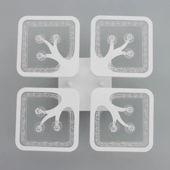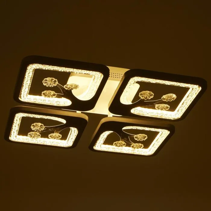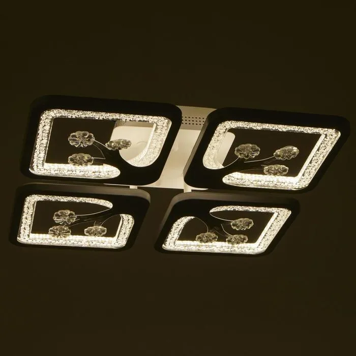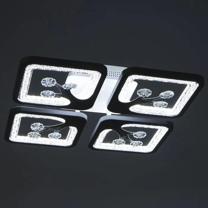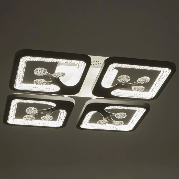 - Квадратная плоская конструкция (36×36 см): Люстра компактна по высоте и подходит для квартир с низкими потолками. Форма и направление света в стороны делают освещение мягким, но достаточным для повседневной жизни.