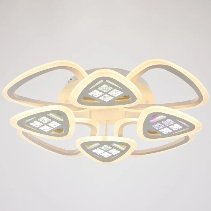 Форма служит функции: Управление с пульта, встроенные LED-элементы и стильный белый дизайн делают люстру частью современного образа жизни. Это не просто источник света — а инструмент настройки атмосферы в доме.