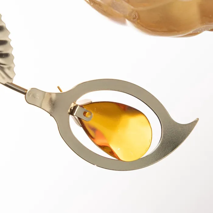 - Металлические листья: Основание люстры оформлено металлическими листьями, что обеспечивает её прочность и долговечность.