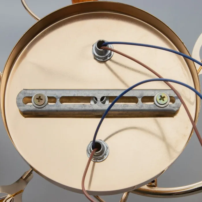 - Золотистый оттенок: Изящный золотой цвет основания люстры притягивает взгляд своим благородным внешним видом, добавляя интерьеру нотку роскоши.