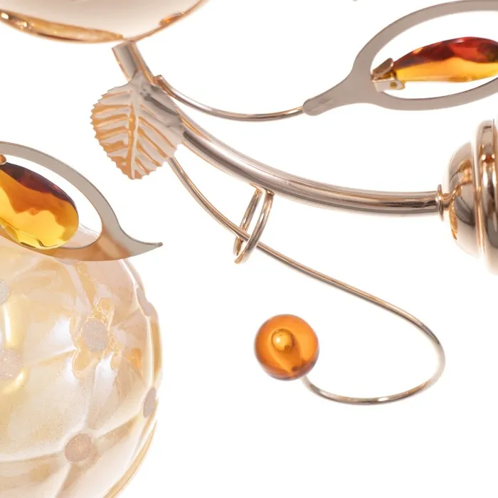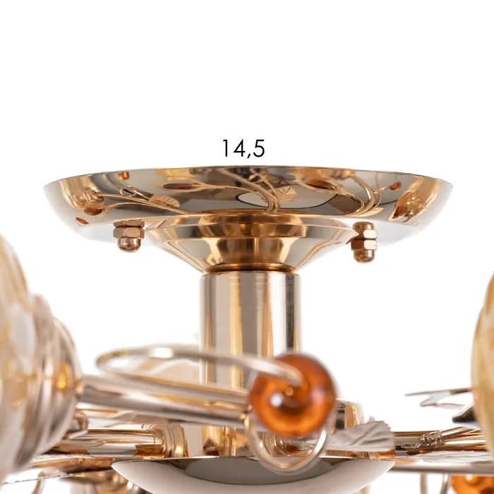 - Особенности светильника: Металлические элементы в виде листьев с ягодами добавляют дизайну природную красоту и гармонию, делая люстру подходящей для самых разнообразных интерьеров.