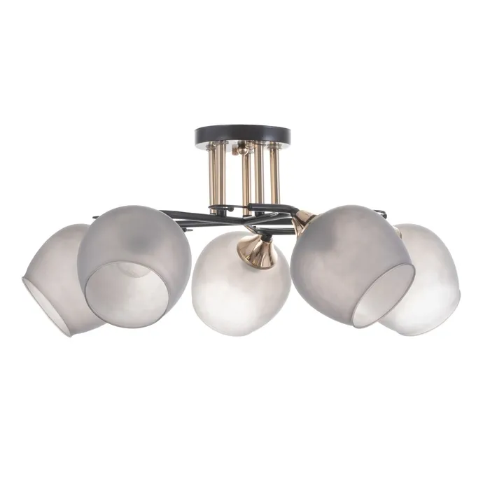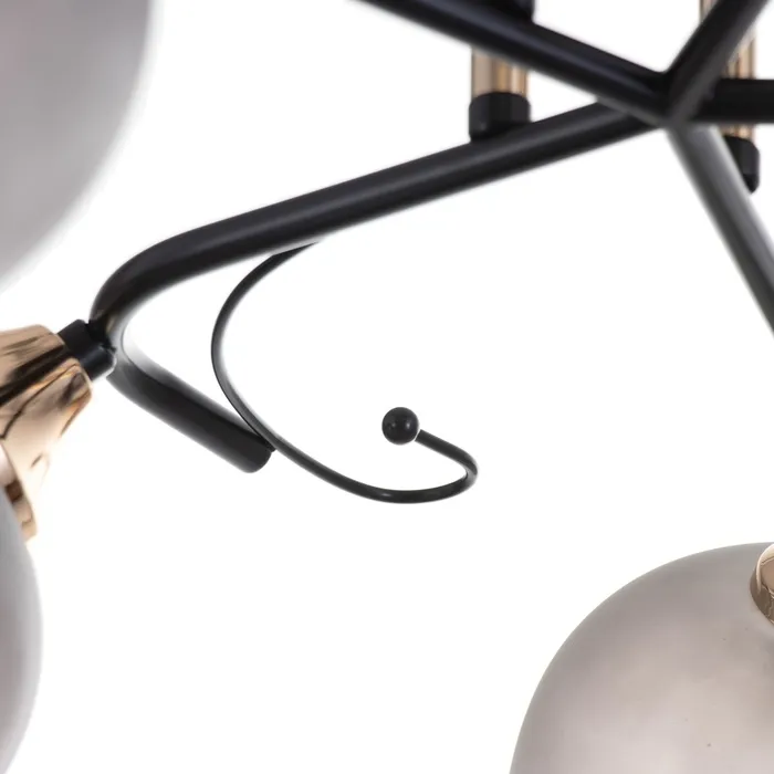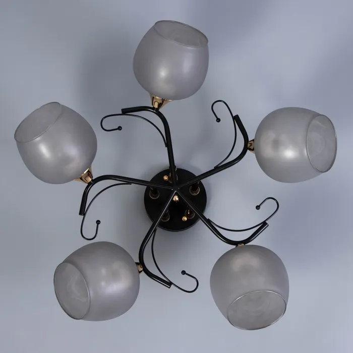 Уникальная потолочная люстра «Акапулько» — изделие, сочетающее в себе классический стиль и современные тенденции. Светильник с черным металлическим основанием и стеклянными плафонами темно-серых тонов станет эффектным элементом декора в любой комнате.