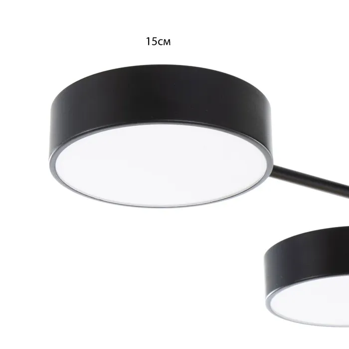 - Дизайн в стиле хай-тек: Зигзагообразная форма основания и чёрные металлические плафоны создают динамичную композицию. Круглые плафоны направлены вниз, обеспечивают точечное, безтениевое освещение. Такой светильник не просто висит — он вносит ритм в пространство.