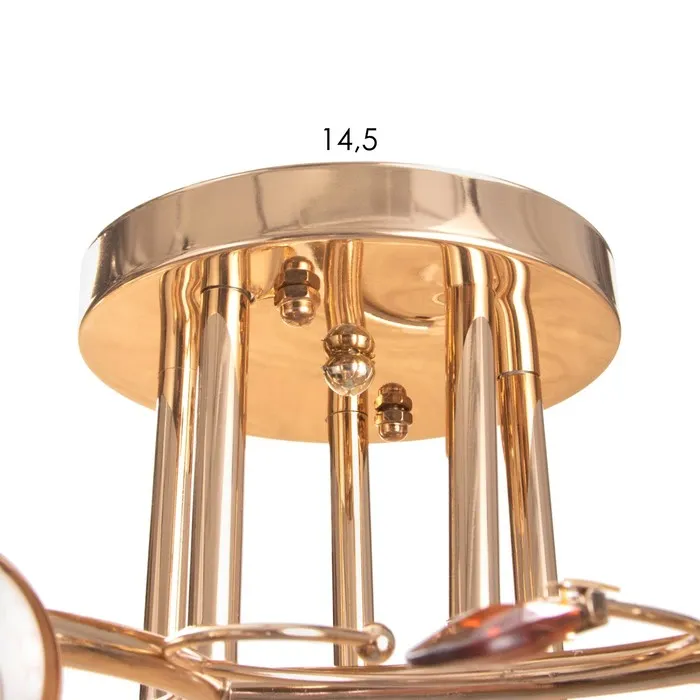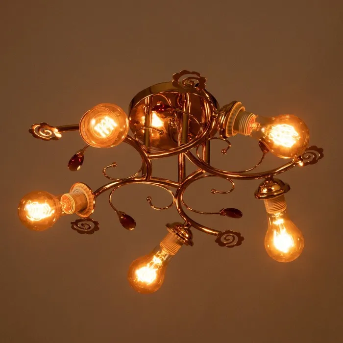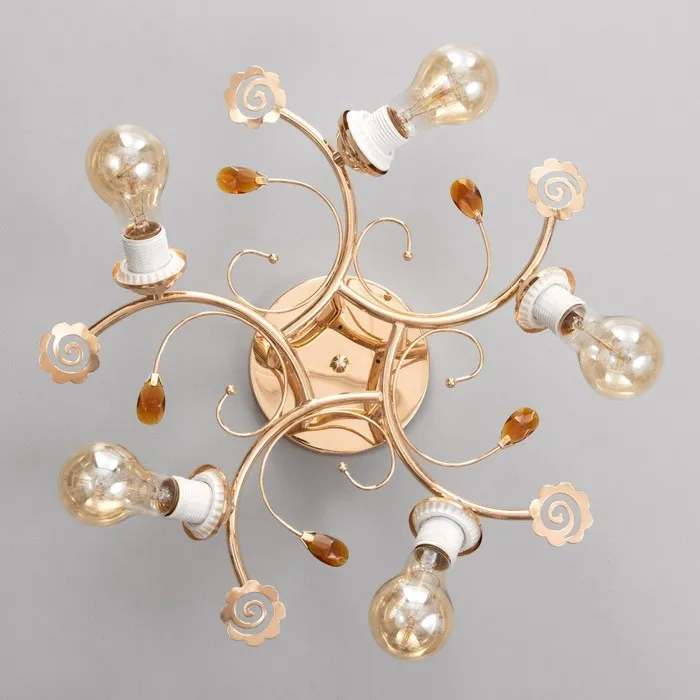 - Элегантный дизайн: Золотые оттенки и витиеватый узор, напоминающий виноградную лозу, придают люстре лёгкость и воздушность, делая её прекрасным дополнением к любому интерьеру.
