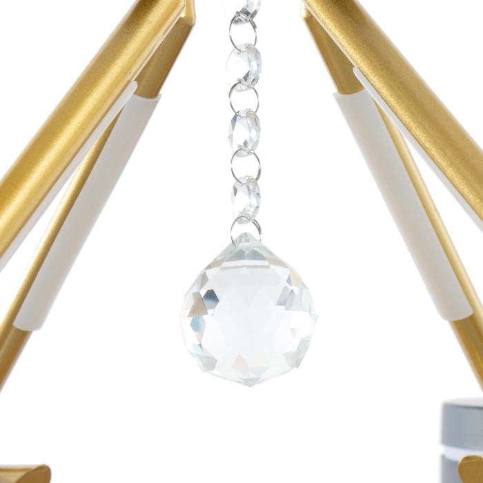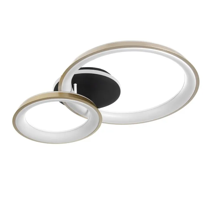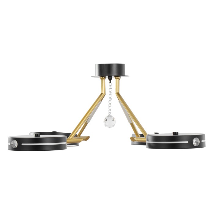 Свет, который работает на атмосферу. Компактная светодиодная люстра с регулируемой цветовой температурой — стильное и функциональное решение для освещения помещений площадью до 18 м². Подходит для гостиной, спальни, кухни или прихожей в стиле модерн, скандинавского минимализма или урбанистического лофта. Чёрно-золотой каркас и круглые плафоны из металла создают сбалансированный образ — строгий, но не холодный.