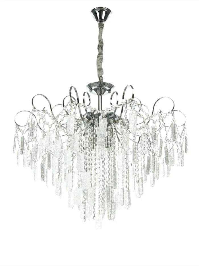 - Дизайн с акцентами: Плафоны выполнены в двух вариантах — чёрные и белые, что добавляет люстре визуальной динамики. Металлическая основа и штанговый подвес подчёркивают современный стиль. Размер 65×65 см делает светильник заметным, но не громоздким.