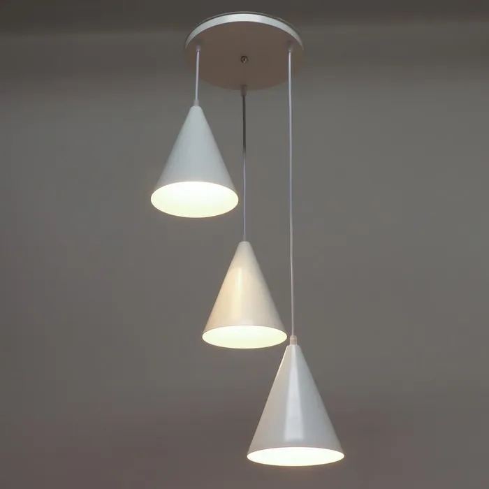 Свет, который подчеркивает стиль и создаёт уют! Подвесная люстра с тремя белыми конусными плафонами — это сочетание минималистичного дизайна и мощного светового потока. Подходит для гостиной, спальни, кухни или прихожей площадью до 2 м². Белый цвет и стиль лофт делают её частью современного и функционального интерьера.