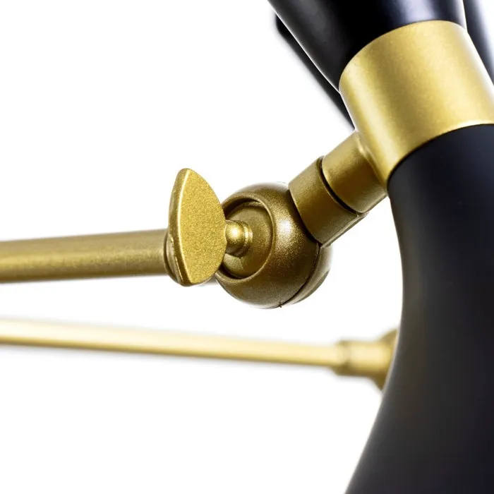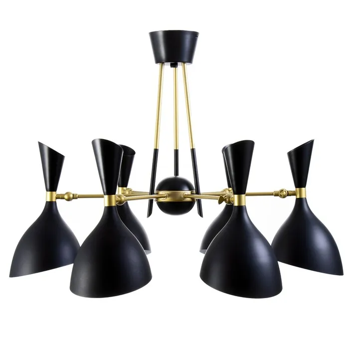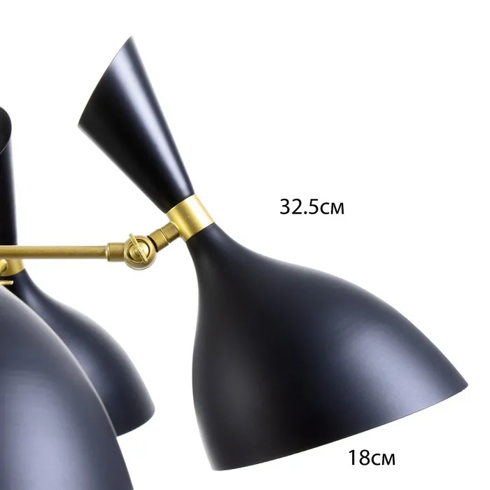 Сочетание современного стиля, функциональности и элегантности. С черно-золотым основанием, металлическими конусообразными плафонами, станет изысканным украшением вашего интерьера, создавая атмосферу уюта и комфорта.