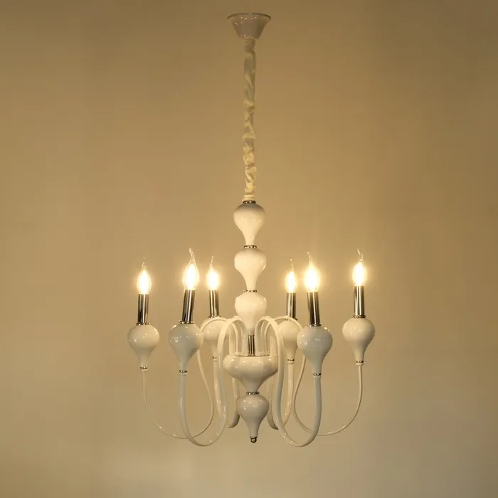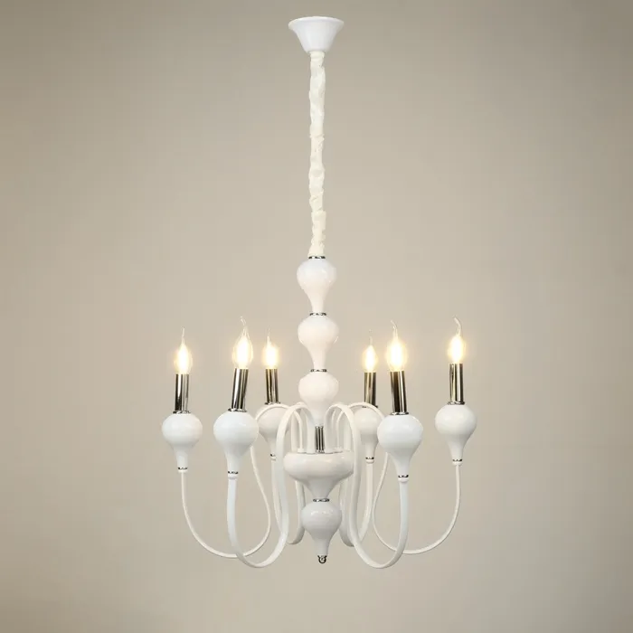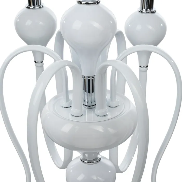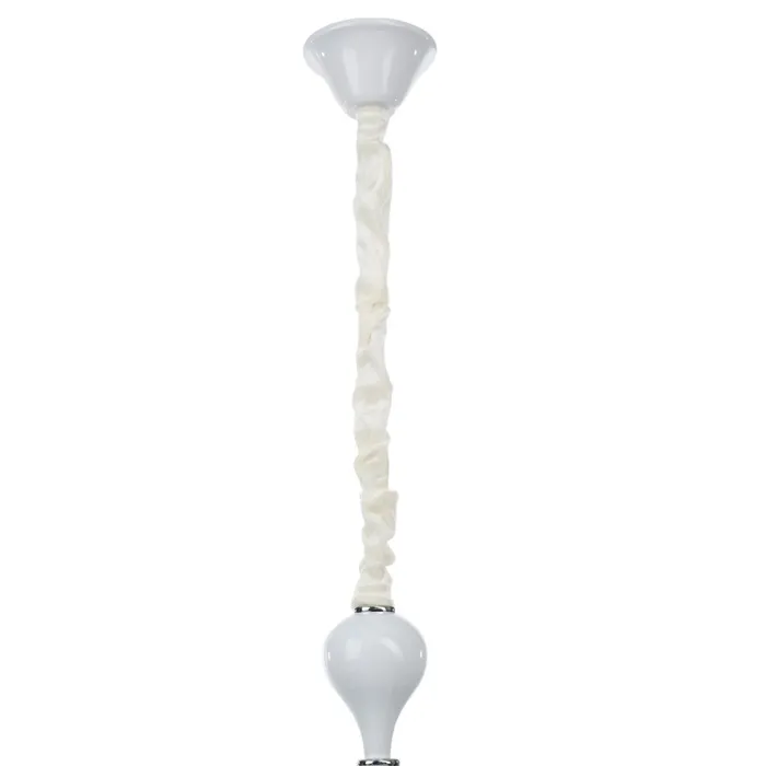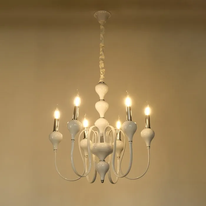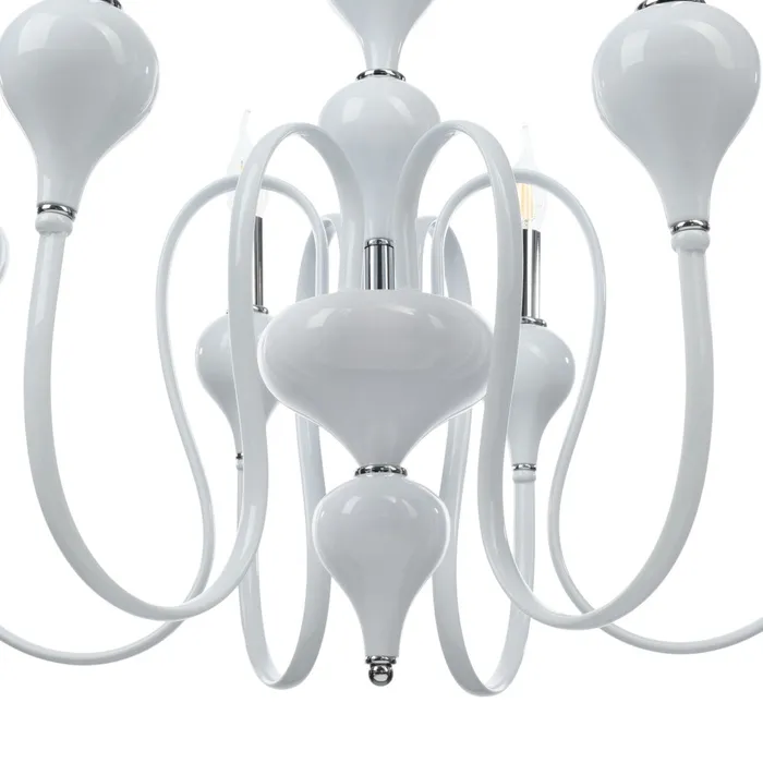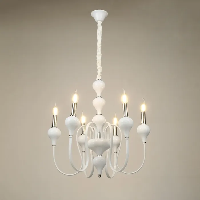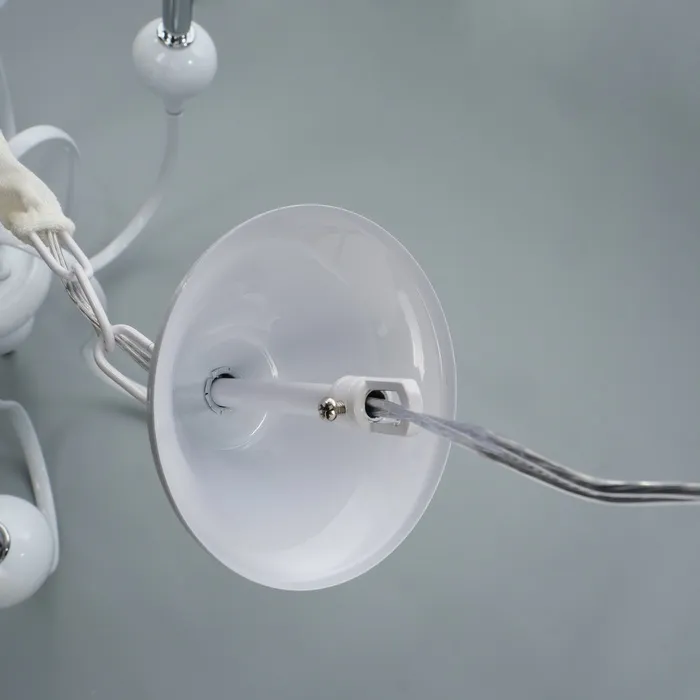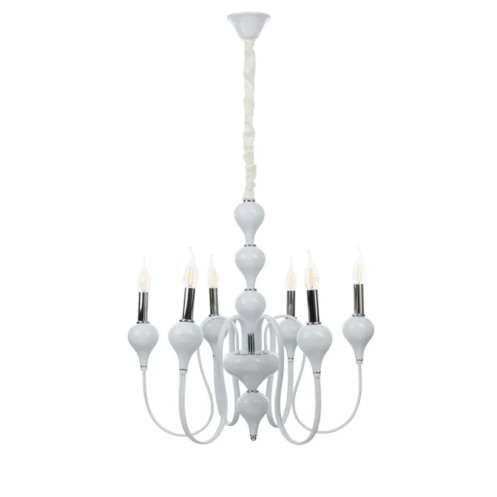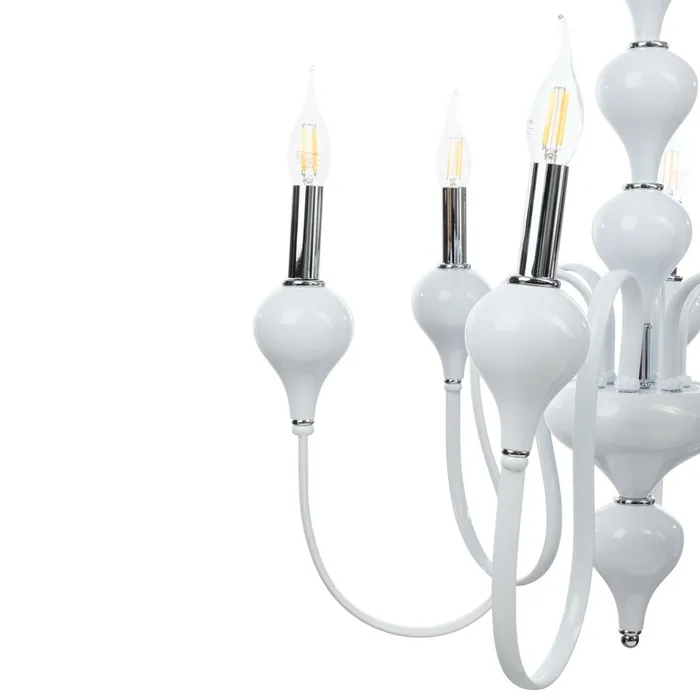 • Классический дизайн: бело-хромовое основание и форма "под свечку" придают люстре изысканный и элегантный вид, идеально подходящий для спален, больших залов и кухонь.