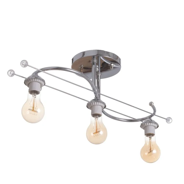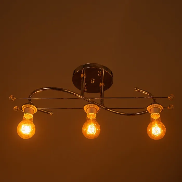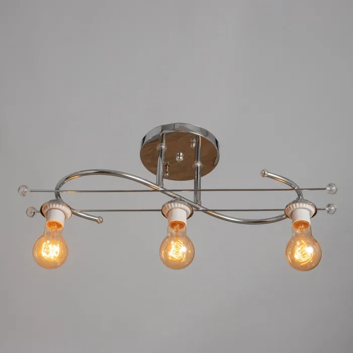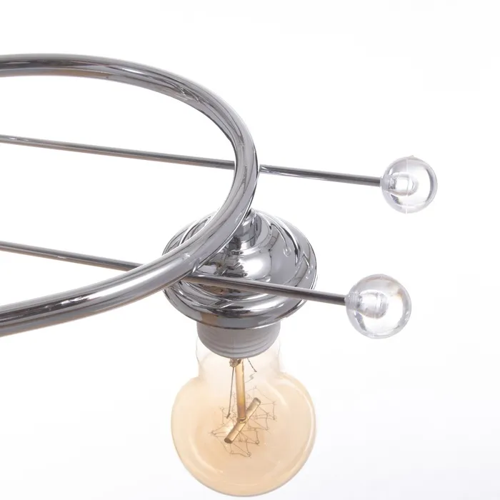 Металлическое основание в хромированном исполнении выглядит современно и элегантно, подчеркивая высокий уровень качества изделия. Отсутствие плафонов делает конструкцию легкой и воздушной, акцентируя внимание на самих лампах накаливания.