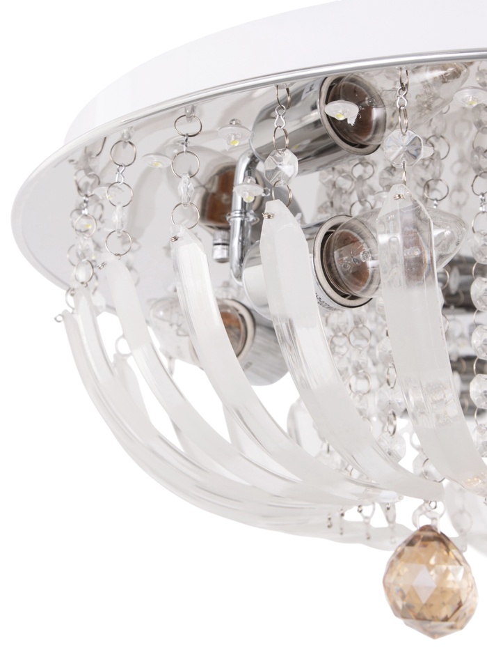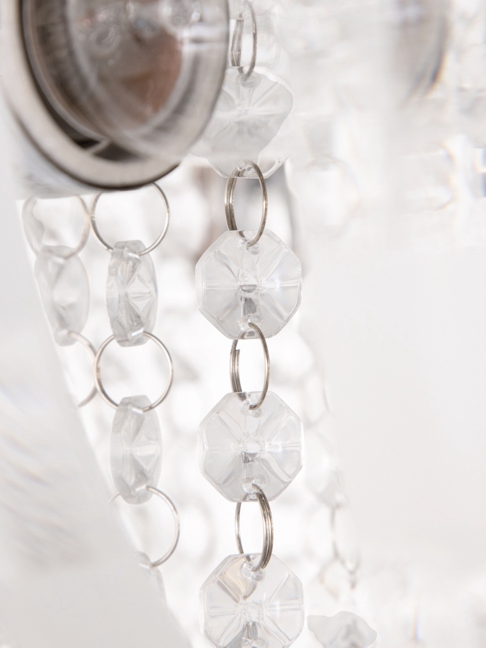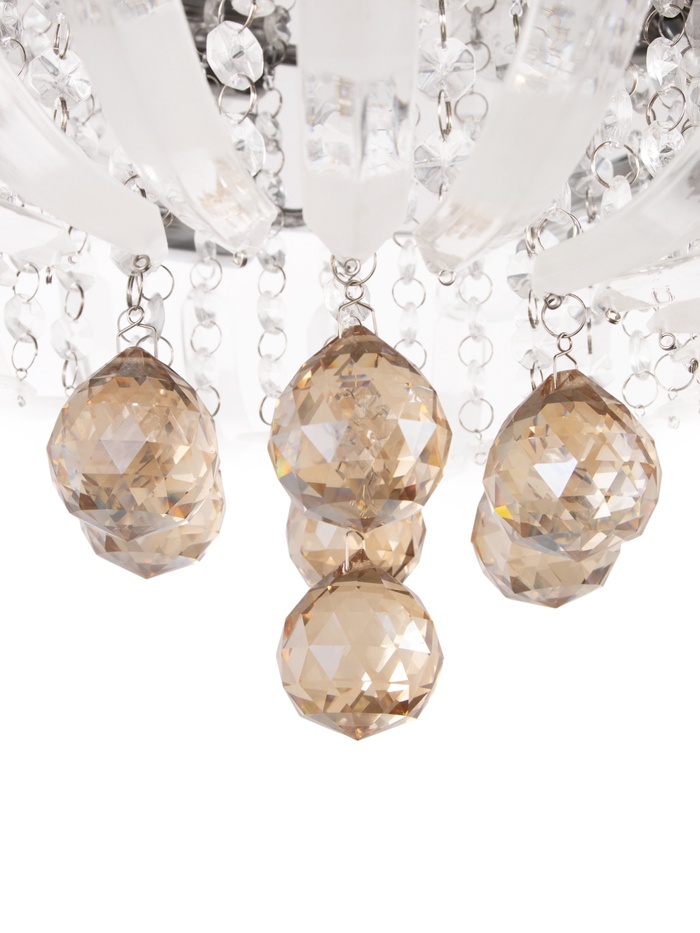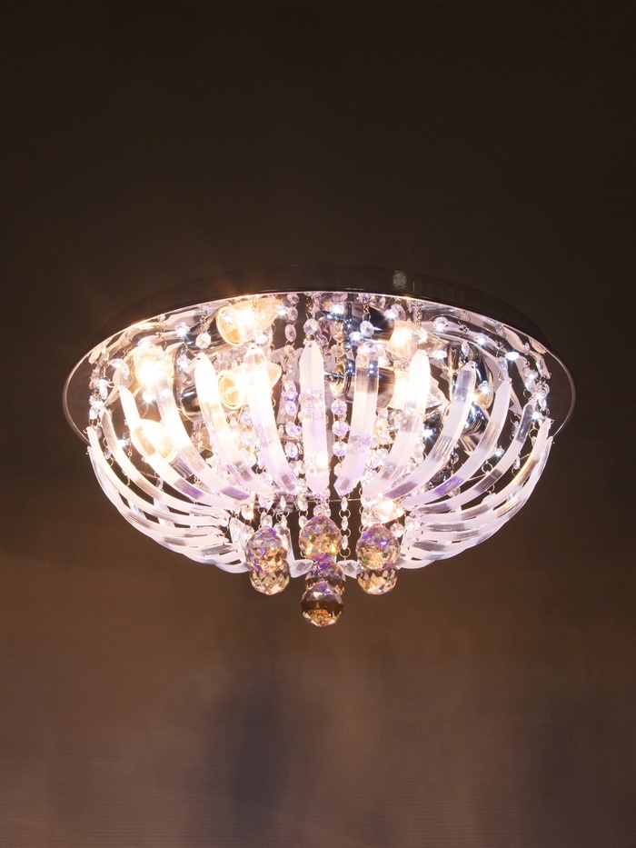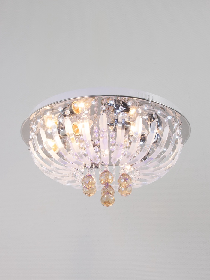 - Хрусталь без вычурности: Форма «буше» и компактная высота (всего 20 см) делают люстру подходящей даже для помещений со средней высотой потолков. Стеклянные детали и металлическое основание подчёркивают стиль без перегруза пространства.