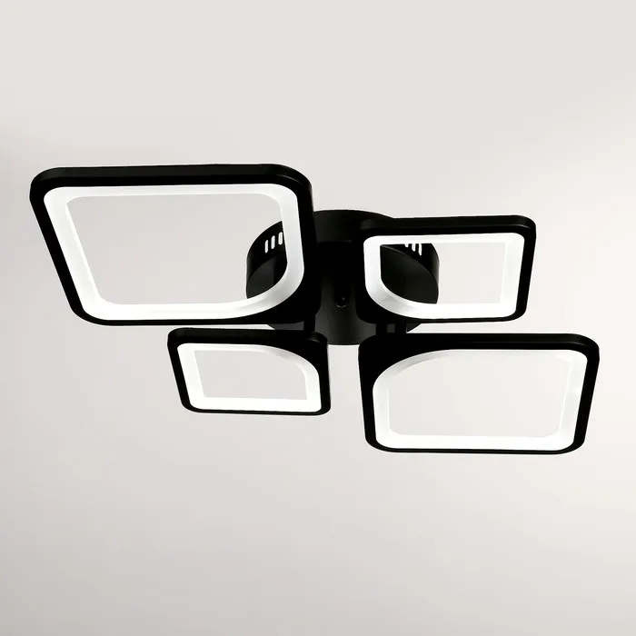 Прямоугольная LED-люстра в стиле модерн — стильное решение для тех, кто ценит лаконичность и функциональность. Чёрная металлическая конструкция со встроенной светодиодной подсветкой создаёт равномерное освещение до 27 м².