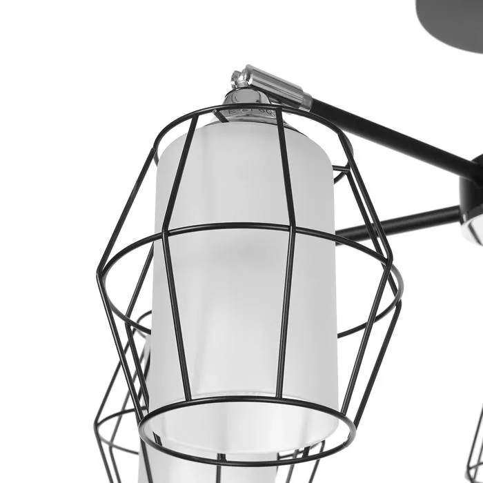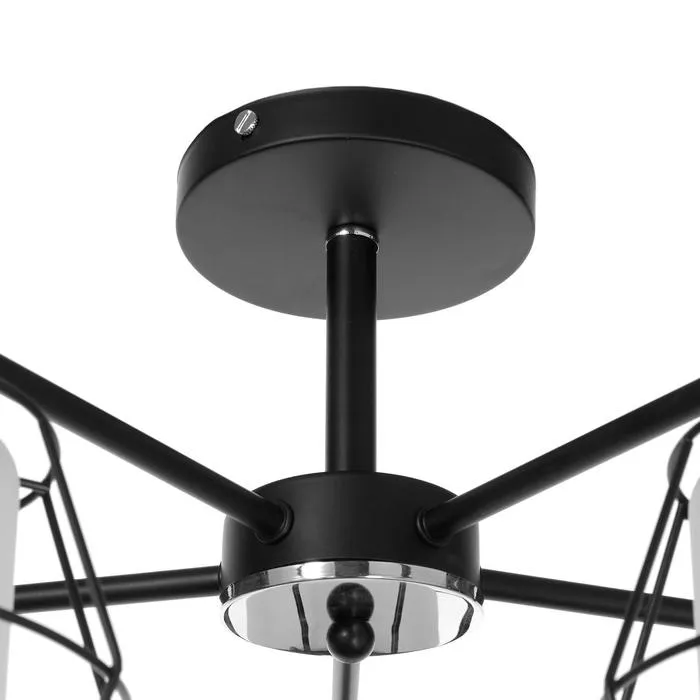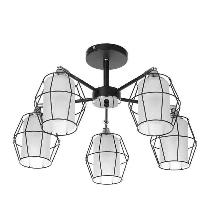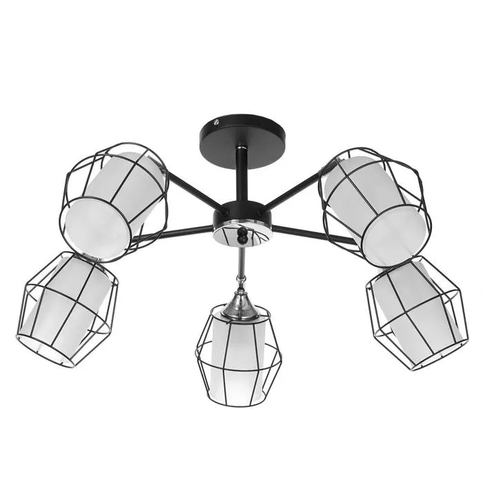 Люстра сочетает в себе практичность и элегантность. Матовые белые и черные плафоны создают мягкий направленный свет. Металлическое черное основание обеспечивает надежность конструкции.