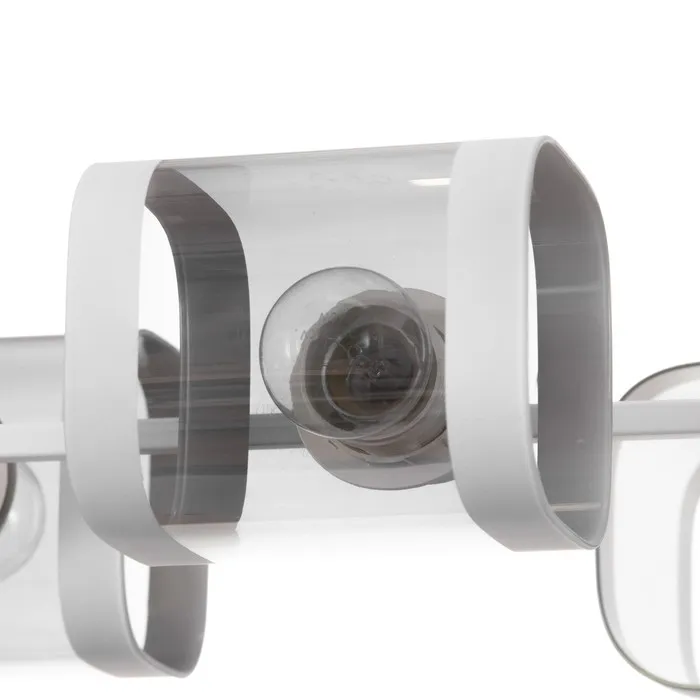 - Стеклянные прозрачные плафоны с белыми вставками обеспечивают мягкое рассеивание света.