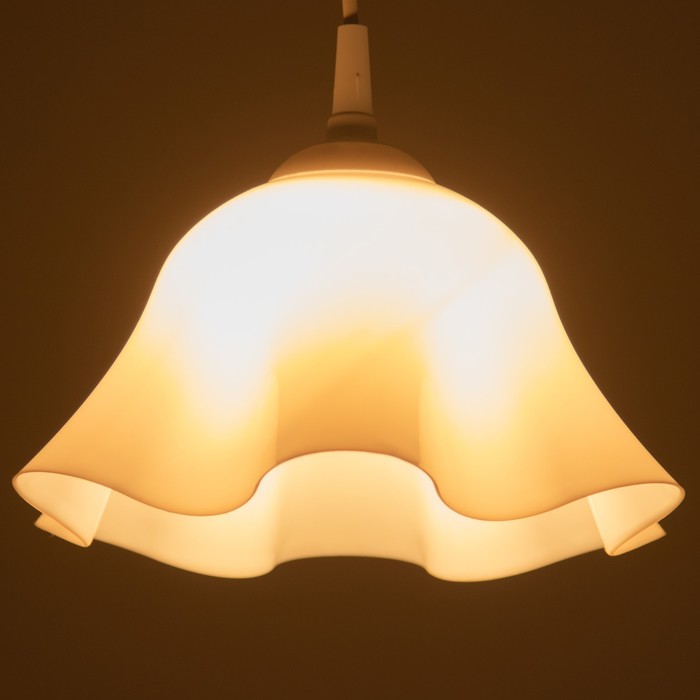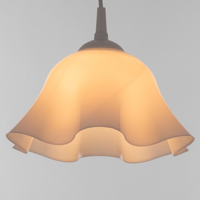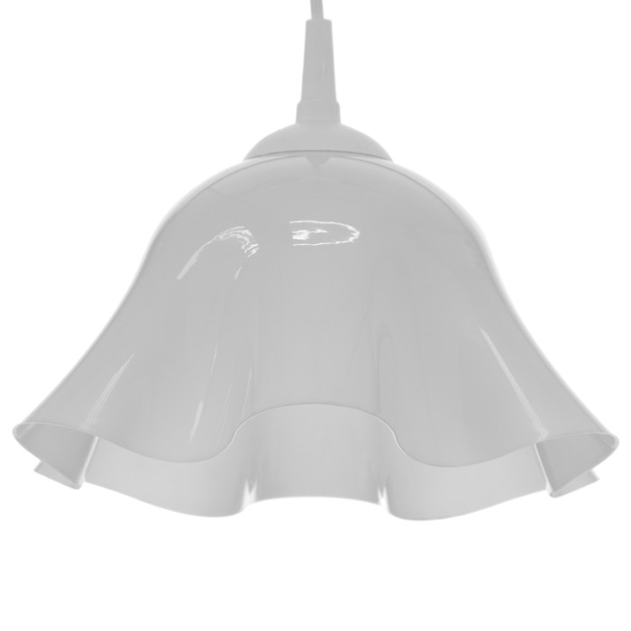 Свет, который цветёт в интерьере. Подвесной светильник с плафоном в форме цветка, белый пластик – это нежное решение для детской или кухни, где важны мягкое освещение, светлые тона и уютная атмосфера.
