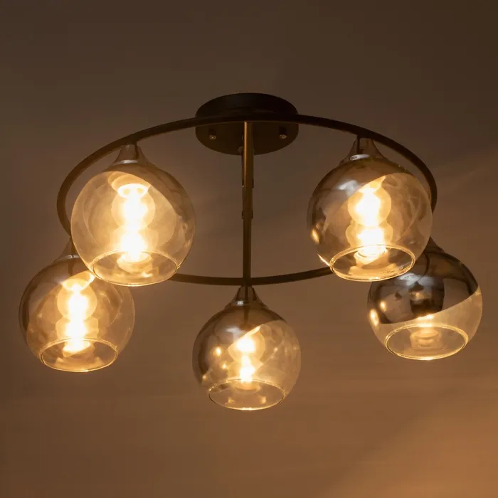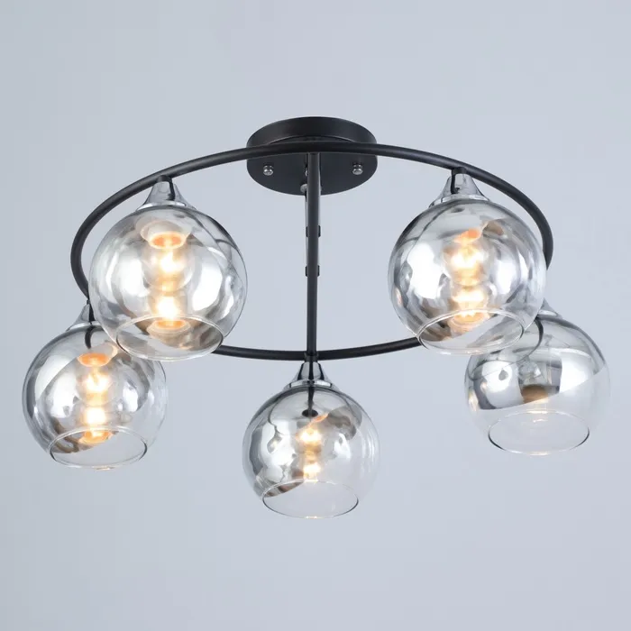 Светильник в черном цвете с пятью лампами станет отличным решением для освещения гостиной или кухни. Элегантный дизайн и функциональность делают его идеальным выбором для тех, кто ценит стиль и практичность.
