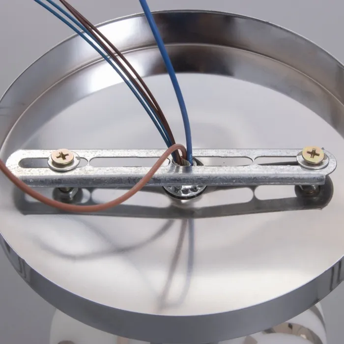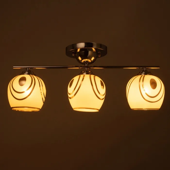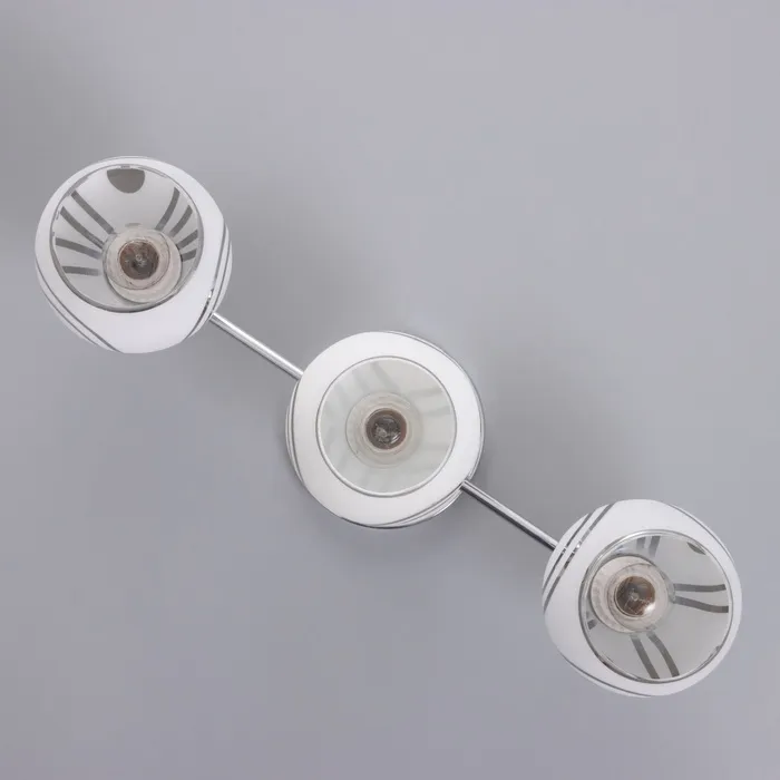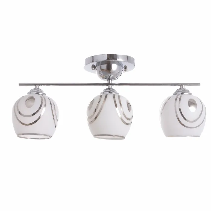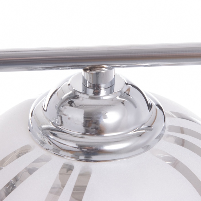 Установка этого светильника не требует сложных действий. Крепится на планку, что значительно облегчает процесс монтажа. Плафоны из матового белого стекла и хромированного цвета придают ему эстетическую привлекательность, сочетаясь с любым дизайнерским решением.