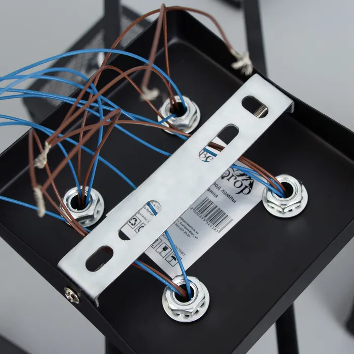 • Металлический каркас: Основание выполнено из черного металла, что добавляет люстре солидности и надежности.