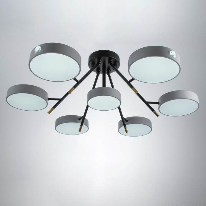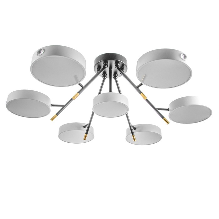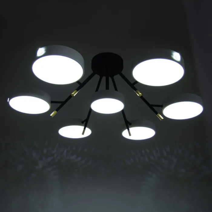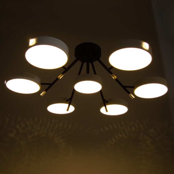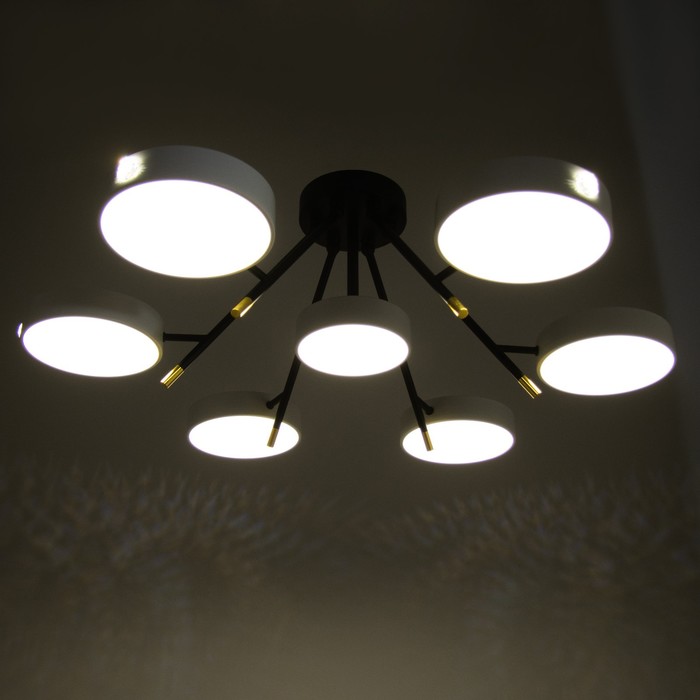 - Семь круглых плафонов со встроенными светодиодами: Мощность 168 Вт и световой поток 9240 лм создают комфортное освещение для помещений до 25 м². Направленный вниз свет reduces блики и обеспечивает равномерное распределение.