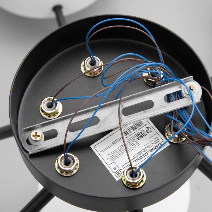 - Лаконичный дизайн в черно-белой гамме: Сочетание матового черного основания и белых плафонов создаёт контрастный акцент в интерьере. Подходит для стилей модерн, скандинавский и contemporary.