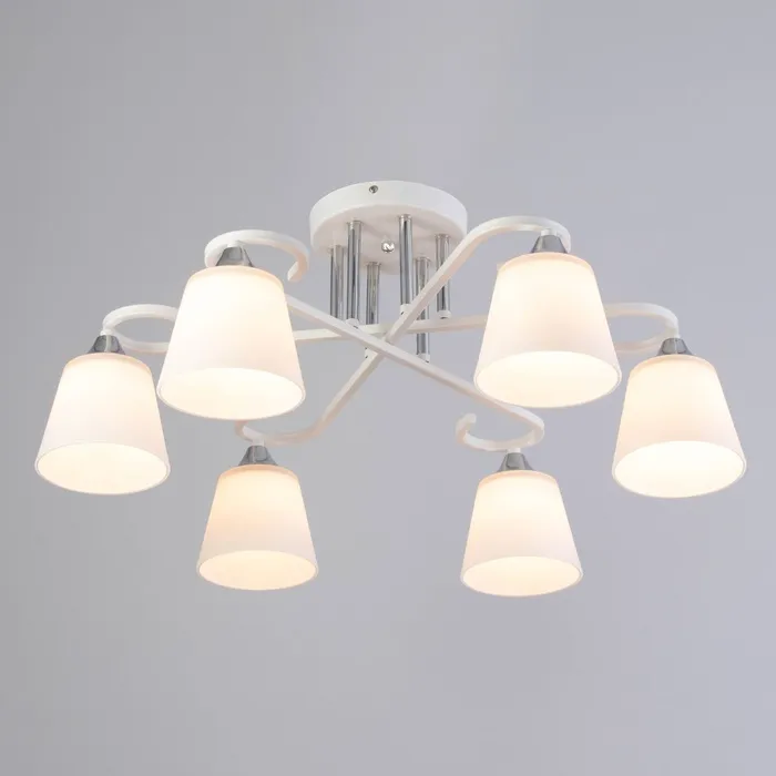 Благодаря продуманному дизайну, модель сочетает в себе функциональность и эстетику. Белый цвет отлично сочетается с различными интерьерами, а компактные размеры делают её идеальной для небольших комнат. Стеклянные плафоны обеспечивают равномерное рассеивание света, создавая комфортную атмосферу.