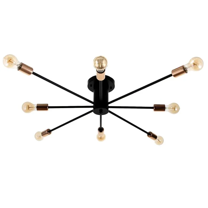 - Полусферические плафоны направлены вниз, равномерно распределяя свет.