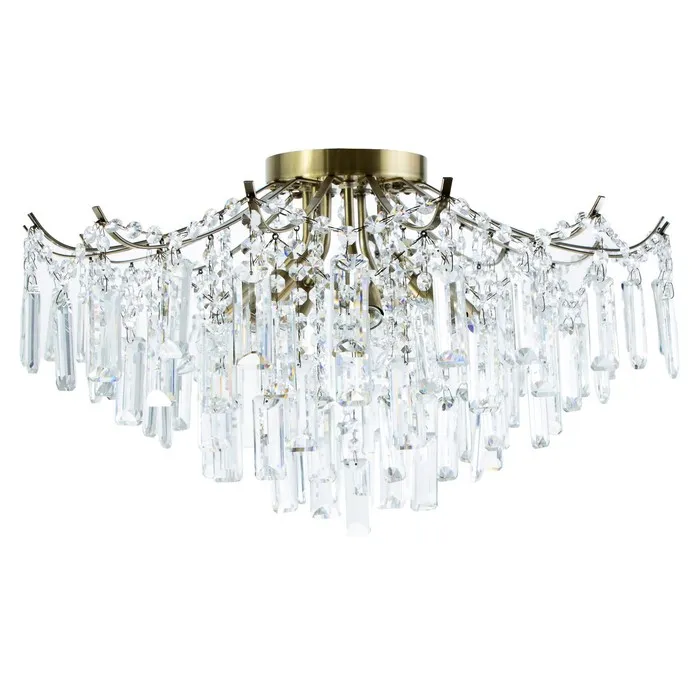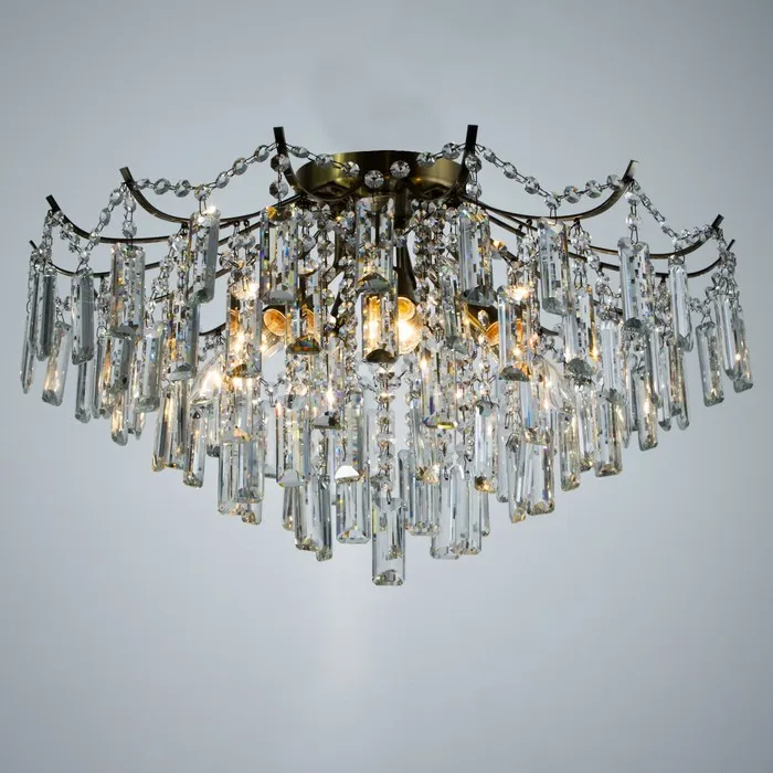 Свет, который не просто освещает комнату — он её преображает! Потолочная люстра с семью лампами и бронзовым каркасом — это мощное и стильное решение для гостиной, спальни или уютного кафе. Благодаря штанговой конструкции и хрустальным переливам люстра заполняет пространство объёмным светом и становится центральным элементом оформления в духе классического хрусталя и современного модерна.