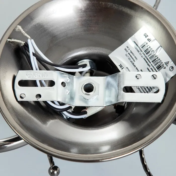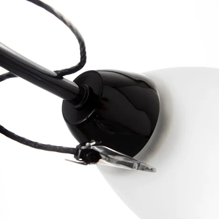 - Чёрное хромированное основание и белые плафоны гармонируют с различными стилями интерьера.