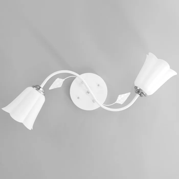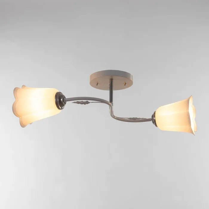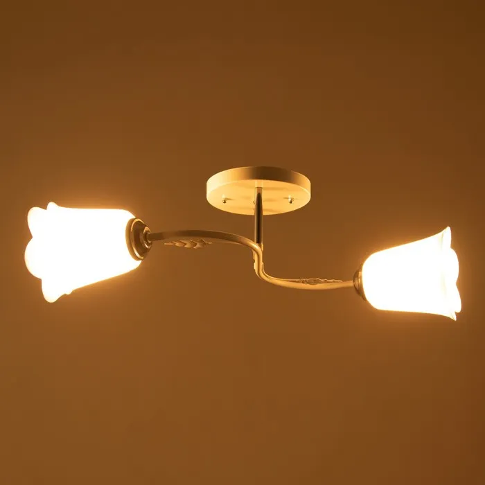 - Классический дизайн: светильник имеет элегантную форму с двумя плафонами, напоминающими цветы, что придаёт ему утончённый и изысканный вид.