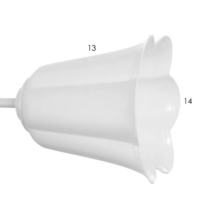 - Минималистичный дизайн: белое металлическое основание и конусообразные плафоны придают люстре стильный и современный вид, идеально подходящий для интерьеров в стиле минимализм.