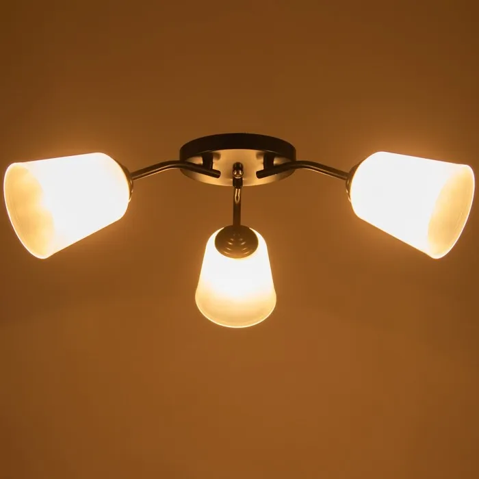 - Качественное освещение: три лампы накаливания мощностью 15 Вт обеспечивают яркое и равномерное освещение площадью до 9 м², создавая уютную атмосферу.
