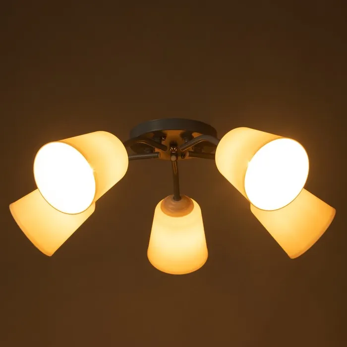 - Качественное освещение: пять ламп накаливания мощностью 15 Вт обеспечивают яркое и равномерное освещение, создавая уютную атмосферу.