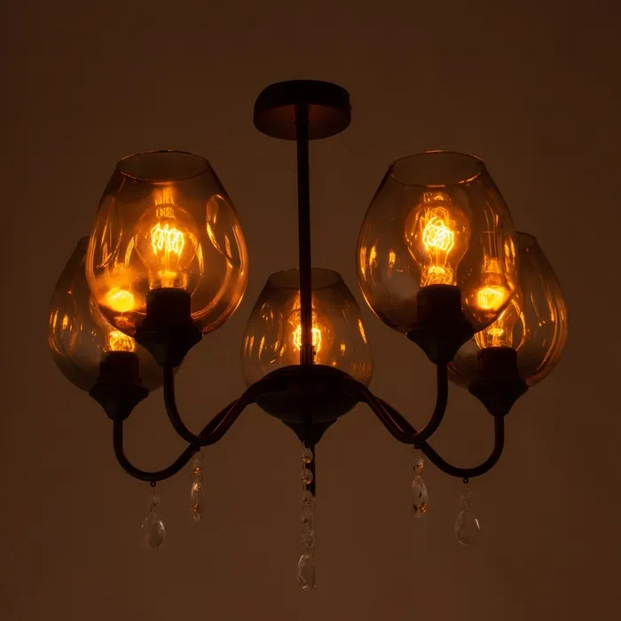 • Мощность: Общая мощность люстры составляет 300 Вт (5 ламп по 60 Вт), обеспечивая яркое и качественное освещение.