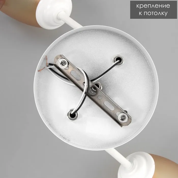 Люстра легко монтируется на планку и подходит даже для натяжных потолков при использовании светодиодных ламп. Направленные в стороны плафоны гарантируют равномерное освещение без слепящих бликов. Отсутствие пульта управления позволяет интегрировать светильник в существующую систему выключателей.