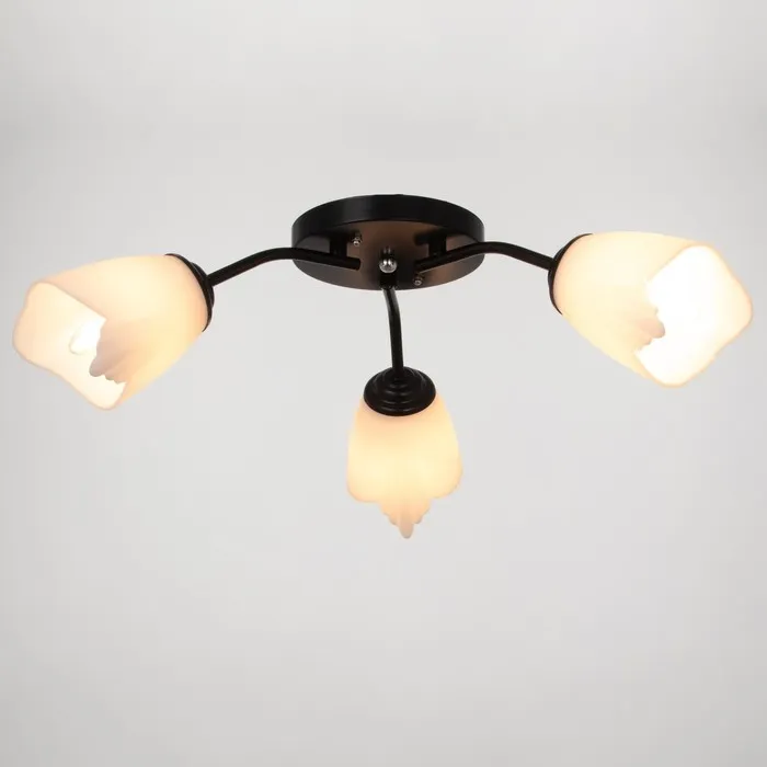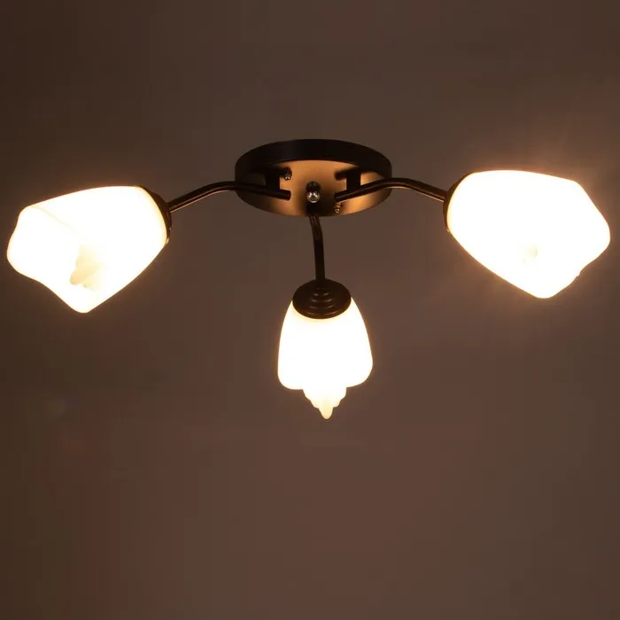 Люстра легко монтируется на планку и подходит даже для натяжных потолков при использовании светодиодных ламп. Направленные в стороны плафоны обеспечивают равномерное освещение без слепящих бликов. Отсутствие пульта управления позволяет интегрировать светильник в существующую систему выключателей.