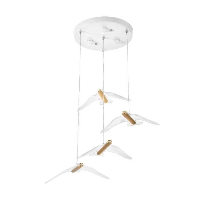 Люстра легко монтируется на планку и подходит даже для натяжных потолков при использовании светодиодных ламп. Направленные в стороны плафоны обеспечивают равномерное освещение без слепящих бликов. Отсутствие пульта управления позволяет интегрировать светильник в существующую систему выключателей.