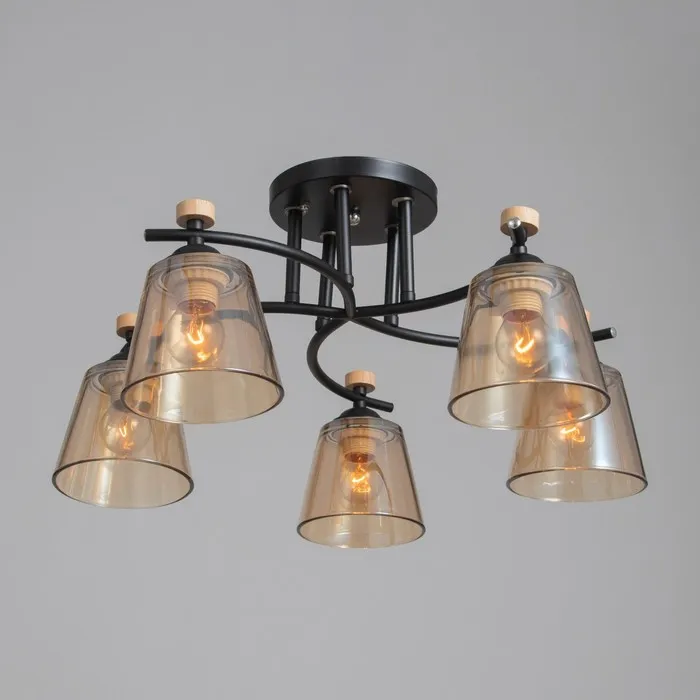 - Современный дизайн: черное основание и конусообразные плафоны из стекла придают люстре стильный и минималистичный вид, идеально подходящий для кухонь и коридоров.
