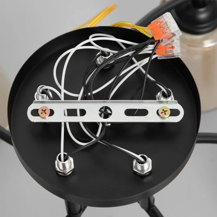 Сочетание современного стиля, функциональности и элегантности. С черным основанием, стеклянными плафонами и лампами накаливания, станет изысканным украшением вашего интерьера, создавая атмосферу уюта и комфорта.