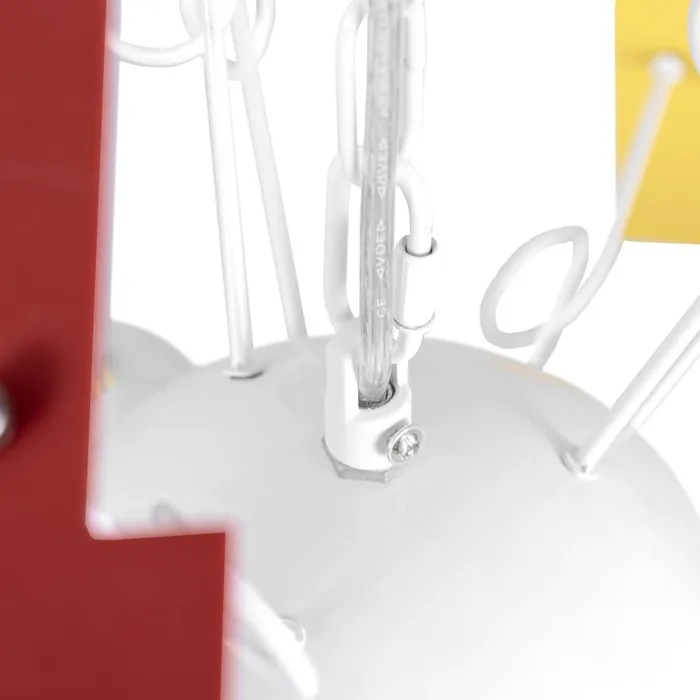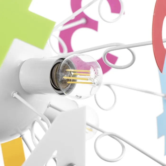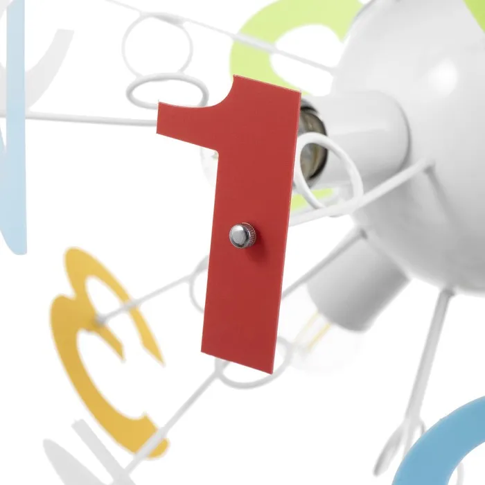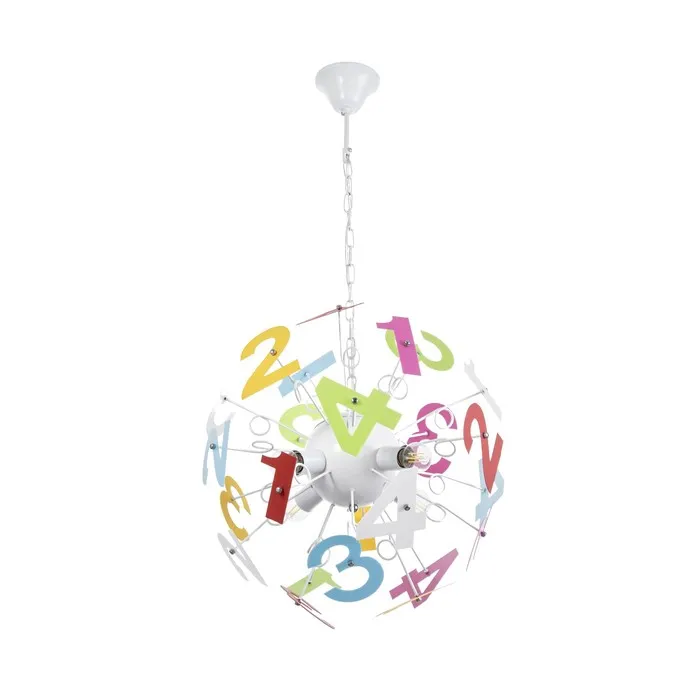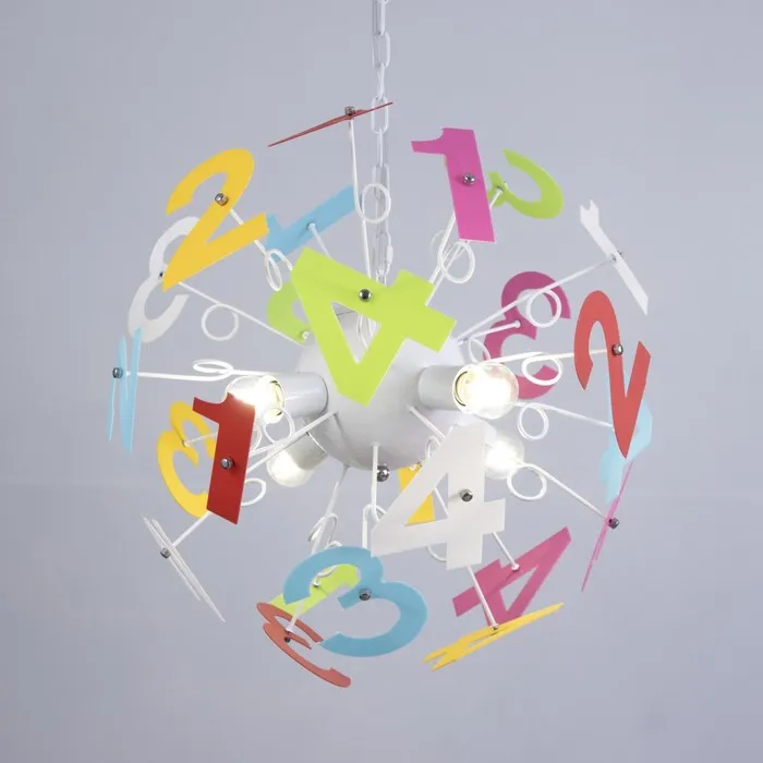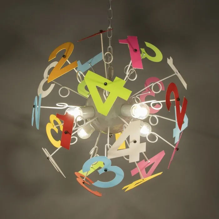 - Яркий дизайн: белое основание и разноцветные цифры придают люстре игривый и веселый вид, идеально подходящий для детских комнат.