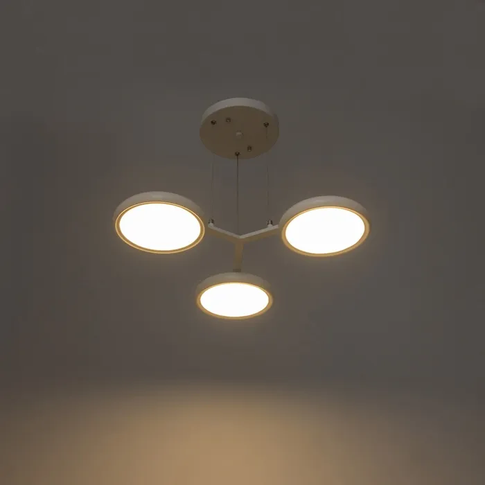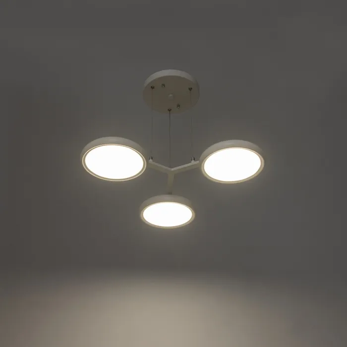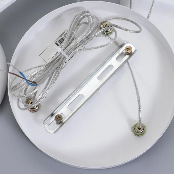 - Современный дизайн: белое основание и круглые рассеиватели из металла и акрила придают люстре стильный и минималистичный вид, идеально подходящий для спален и коридоров.