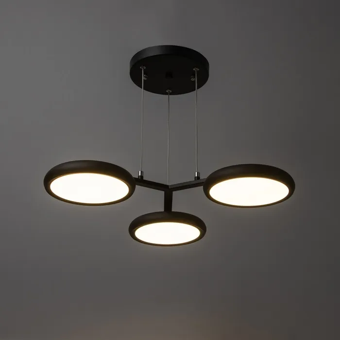 - Современный дизайн: черное основание и круглые рассеиватели из металла и акрила придают люстре стильный и минималистичный вид, идеально подходящий для спален и коридоров.