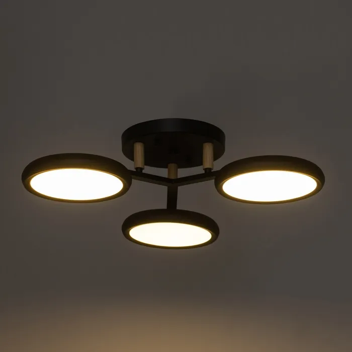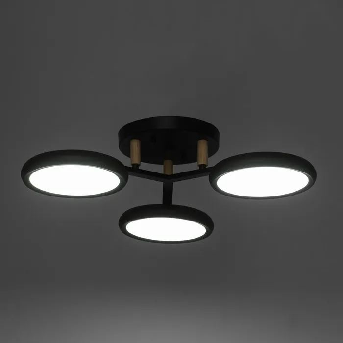 Сочетание современного стиля, функциональности и энергоэффективности. С черным основанием, встроенными LED-лампами и круглыми рассеивателями, станет изысканным украшением вашего интерьера, создавая атмосферу уюта и комфорта.