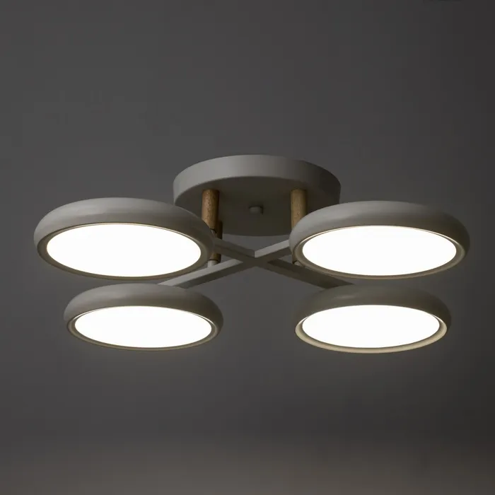 Сочетание современного стиля, функциональности и энергоэффективности. С белым основанием, встроенными LED-лампами и круглыми рассеивателями, станет изысканным украшением вашего интерьера, создавая атмосферу уюта и комфорта.