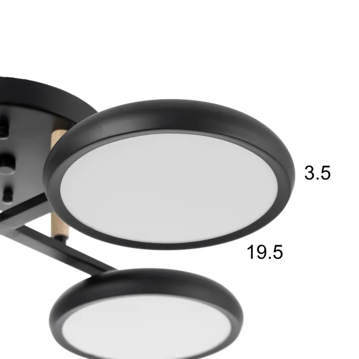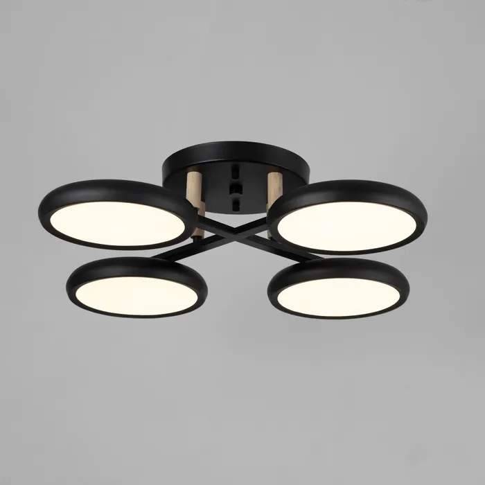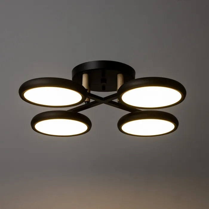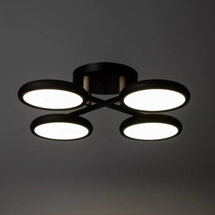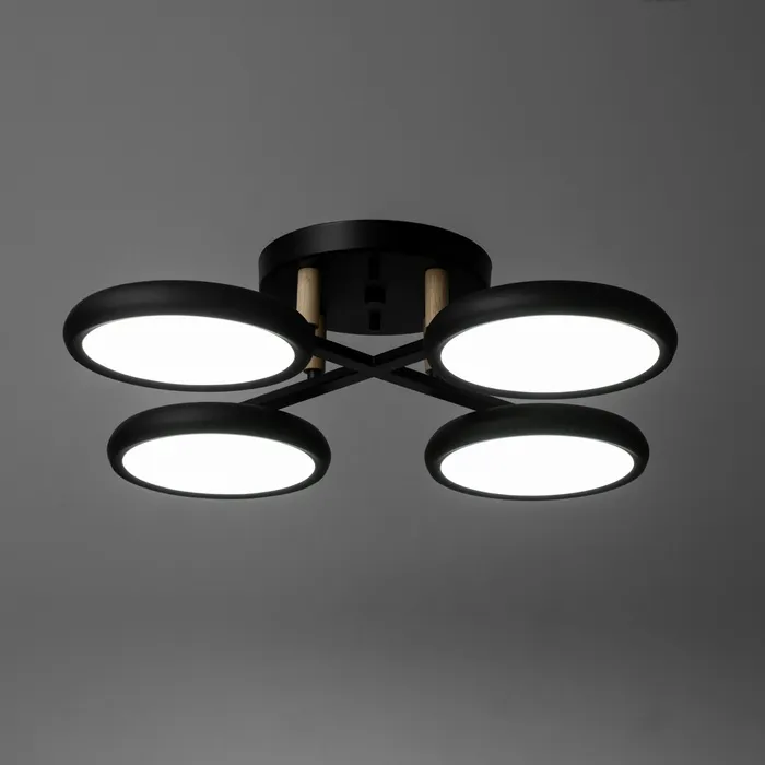 Сочетание современного стиля, функциональности и энергоэффективности. С черным основанием, встроенными LED-лампами и круглыми рассеивателями, станет изысканным украшением вашего интерьера, создавая атмосферу уюта и комфорта.