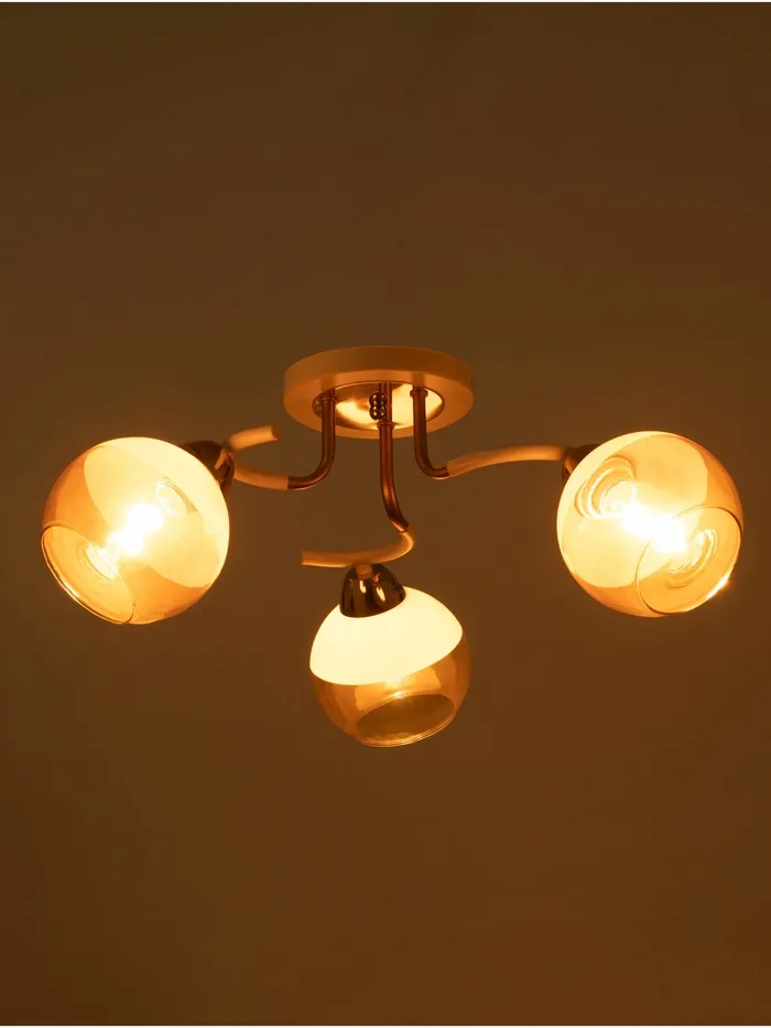 - Стеклянные плафоны: полусферическая форма плафонов добавляет изысканности и создаёт мягкое, рассеянное освещение.